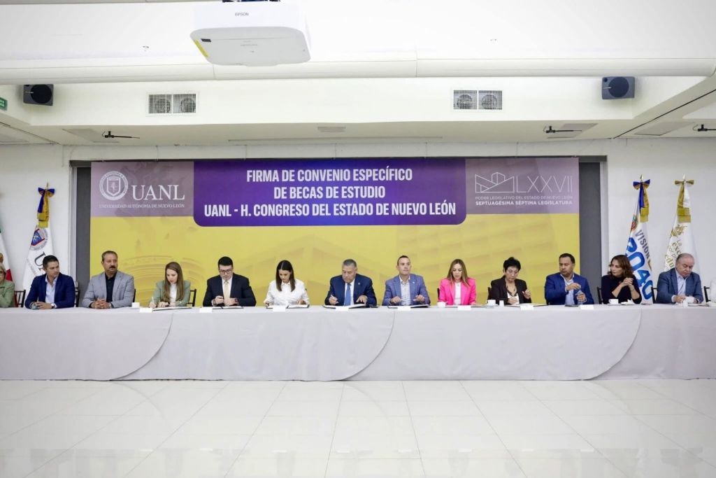Monterrey.- La Universidad Autónoma de Nuevo León y el Congreso del Estado ratificaron un convenio de colaboración para apoyar a estudiantes de escasos recursos, a través del cual se otorgarán becas que cubrirán hasta el 50 % de los servicios académicos y escolares expedidos por la máxima casa de estudios.