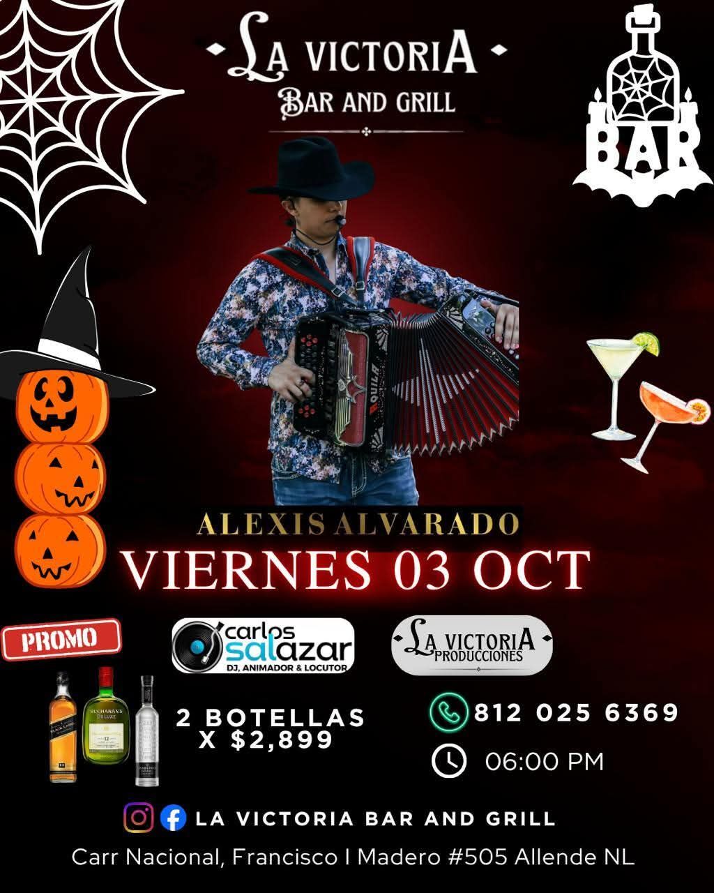 Este viernes 03 de octubre prepárate para una noche llena de ritmo, sabor y ambiente con Alexis Alvarado 🎶💃