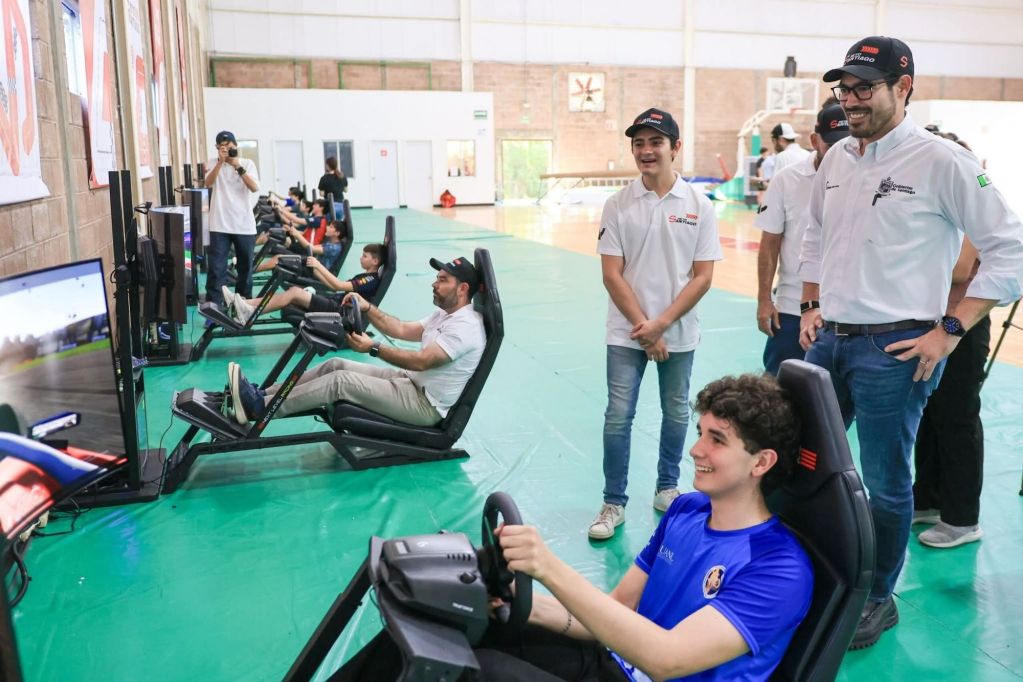 Durante el arranque del evento en el Gimnasio Polivalente, el Presidente Municipal, David de la Peña Marroquín, vivió la experiencia de subirse al simulador para competir junto al piloto santiaguense Edy de la Rosa, compartiendo la adrenalina y demostrando que en Santiago se impulsa el deporte con pasión.