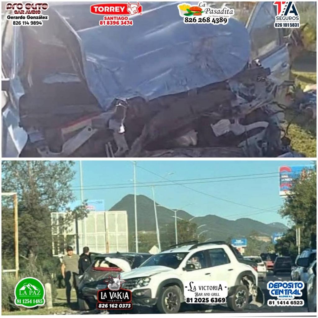 Un percance vial se registró frente a Cantera Eventos, en la Carretera Nacional con dirección de Santiago a Monterrey.