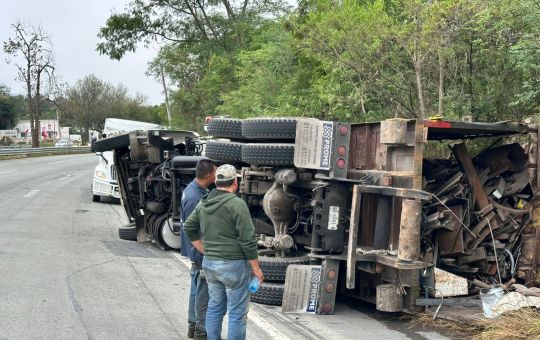 Allende.- Una volcadura se registra en la Carretera Nacional de sur a norte donde un camión de volteo al tomar...