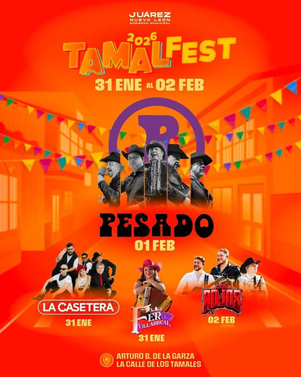 Juárez, Nuevo León, a 24 de enero del 2026-. El municipio de Juárez se prepara para vivir una de sus celebraciones más importantes del año con la edición 2026 del Tamal Fest, donde el municipio refrendará con orgullo su título como La Capital del Tamal, del 31 de enero al 2 de febrero, sobre la tradicional calle de los Tamales (Arturo B. de la Garza).