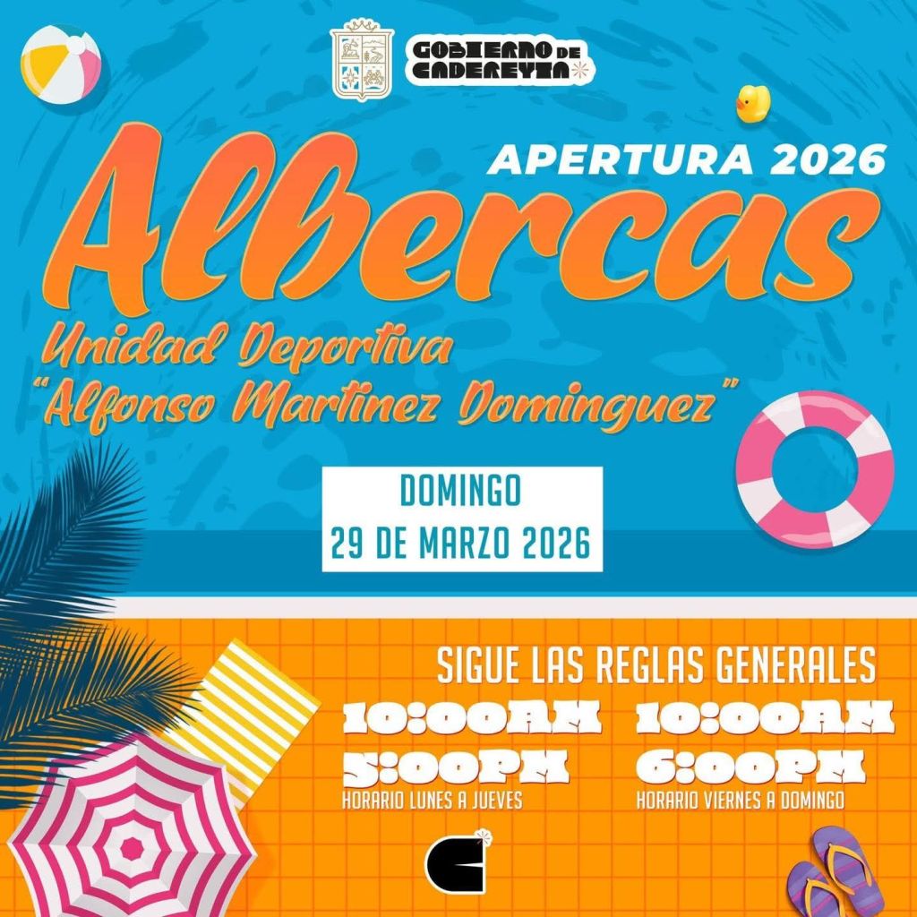 CADEREYTA, NUEVO LEÓN — Con motivo del periodo vacacional, autoridades municipales anunciaron la apertura de la alberca en la Unidad Deportiva Alfonso Martínez Domínguez, invitando a las familias a disfrutar de este espacio recreativo.
