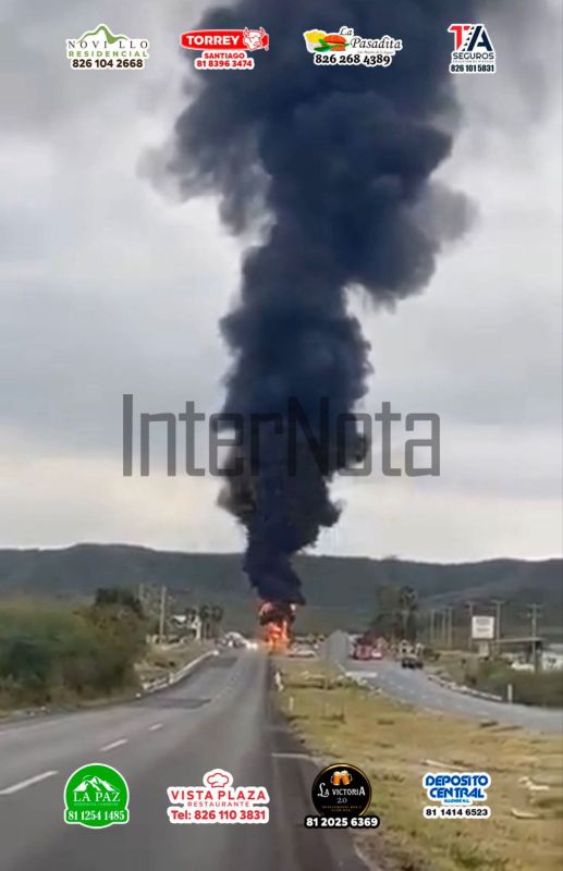 INCENDIO DE PIPA EN CUATRO CAMINOS EN MONTEMORELOS NL