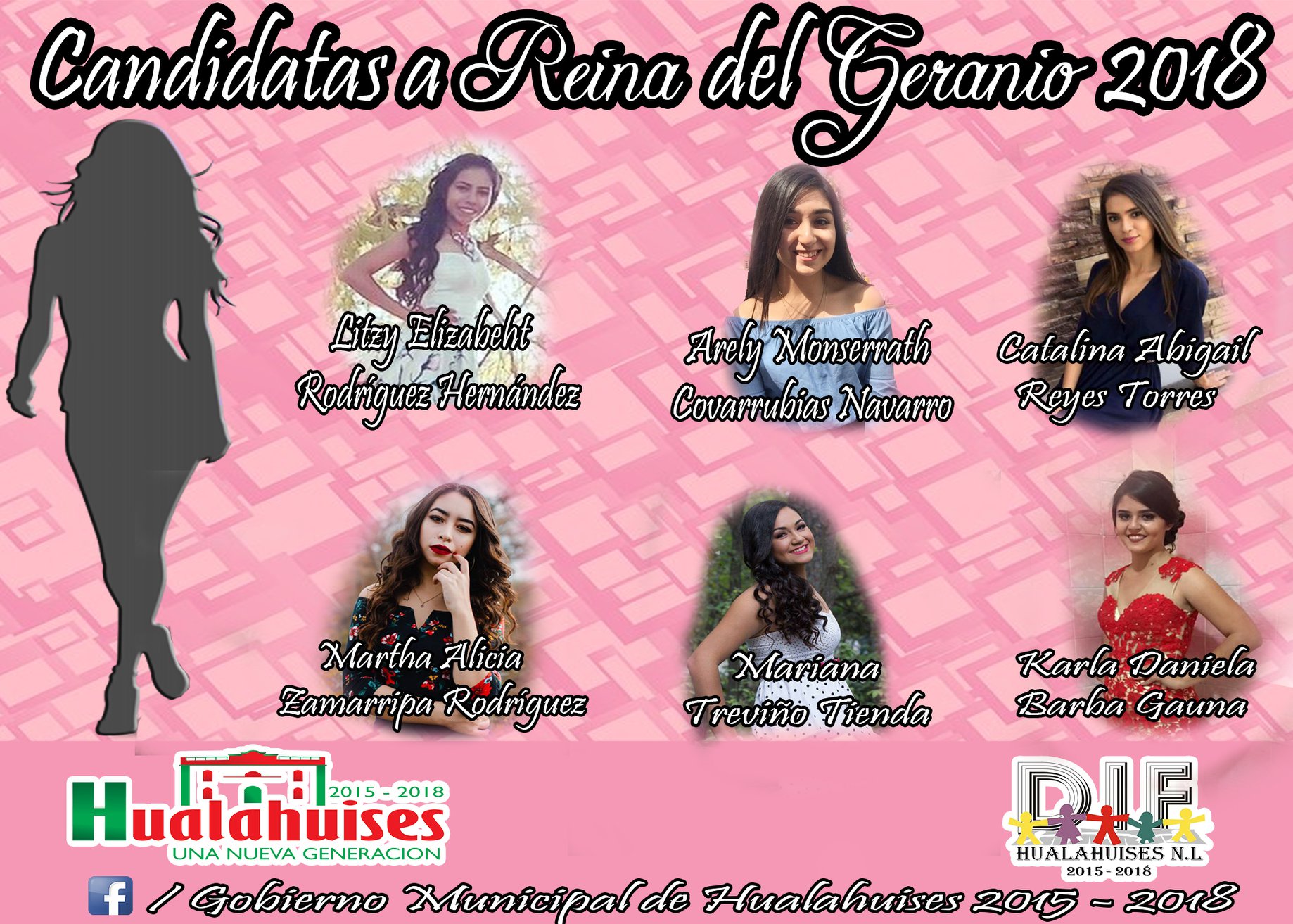 ASPIRANTES AL TITULO “REINA DEL GERANIO 2018”, EN HUALAHUISES N.L.