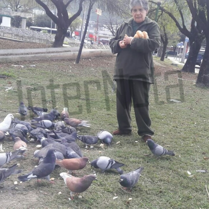 LA SEÑORA ROSARIO RAMÍREZ ALIMENTA PALOMAS ESTO EN COLONIA VILLA LAS FUENTES, MONTERREY N.L