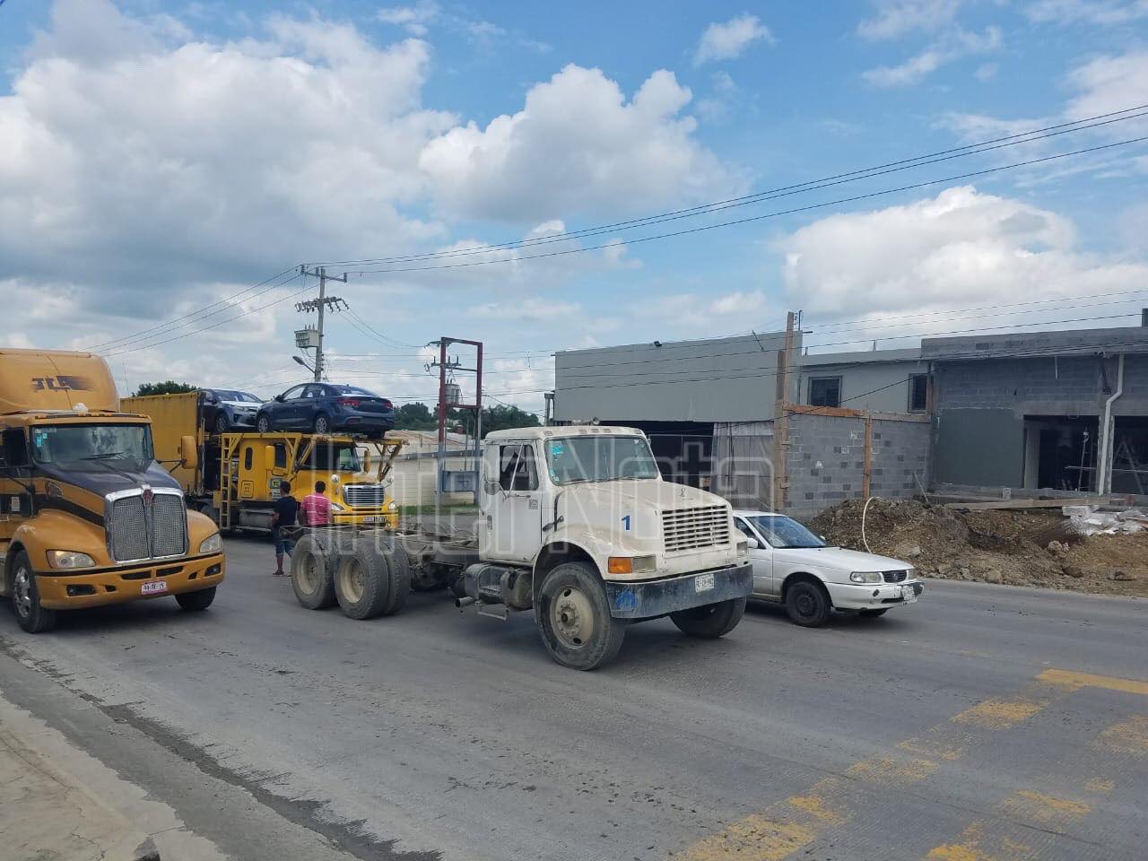 Santiago_ Un tractocamión daño una línea de Cablevisión, debido a que la parte alta de su remolque se enredo con...