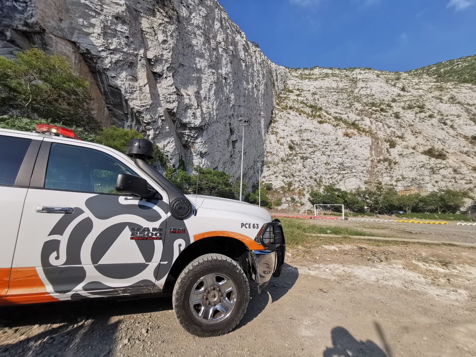 Monterrey. – Elementos de Protección Civil del Estado y Municipal se encuentran en el rescate de un masculino que subió...