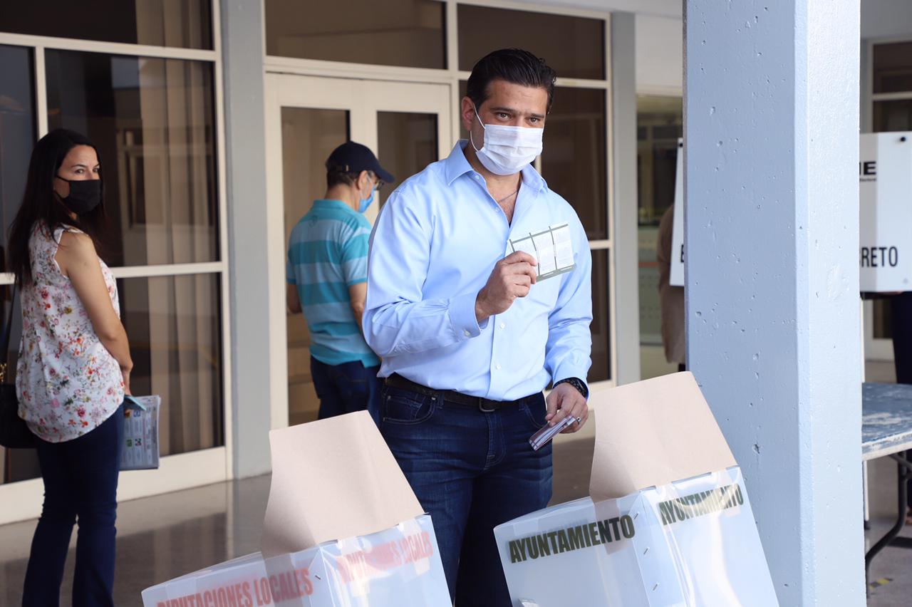 El candidato del PRI a la gubernatura, Adrián de la Garza asistió a la casilla ubicada en Cumbres primer sector...