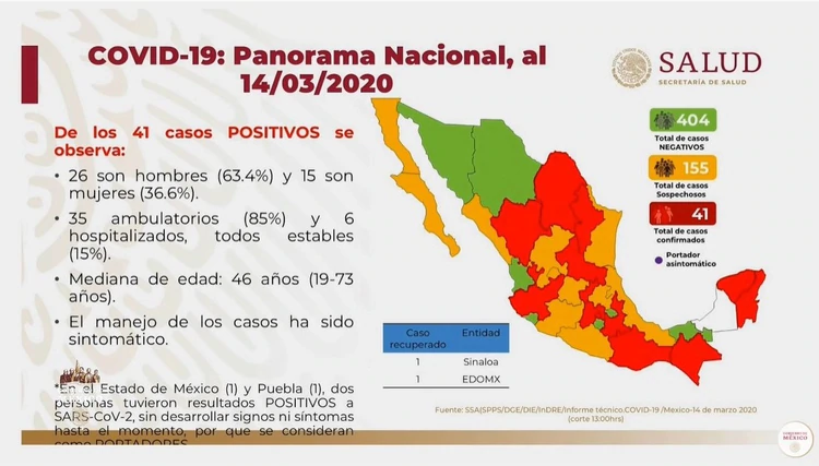 AUMENTA A 41 CASOS CONFIRMADOS DE CORONAVIRUS EN MÉXICO.