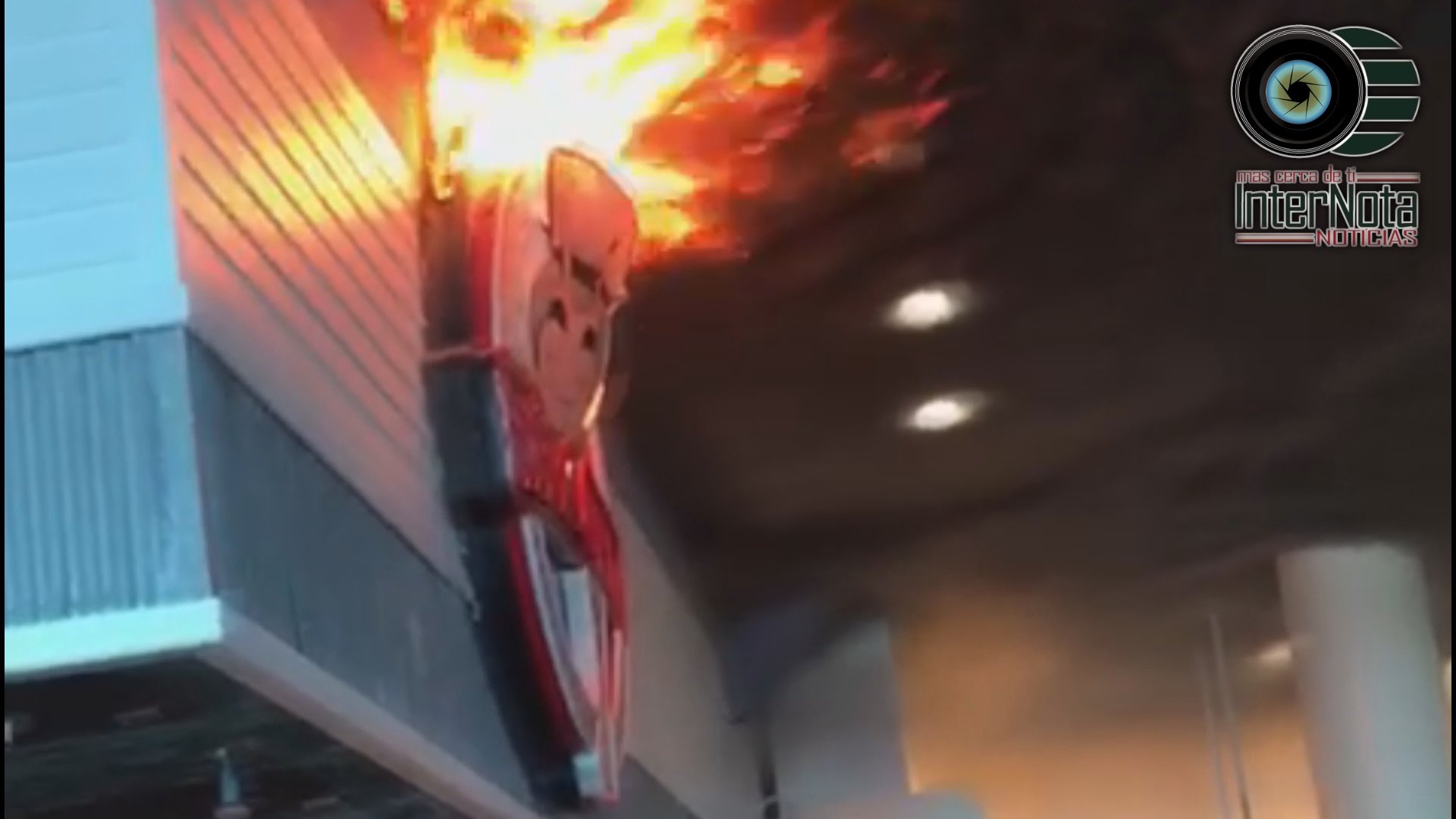 Cancún. - Un corto circuito provoco un pequeño incendio en un anuncio luminoso del restaurante Bubba Gump en el Aeropuerto...