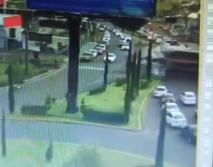 El Tren arrastro un autobús de la línea hp, color gris, en la carretera Atlacomulco a el Oro a la...