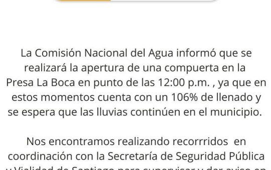 📣 La Comisión Nacional del Agua informó que a partir de las 12:00 p.m. de este miércoles se realizará la...