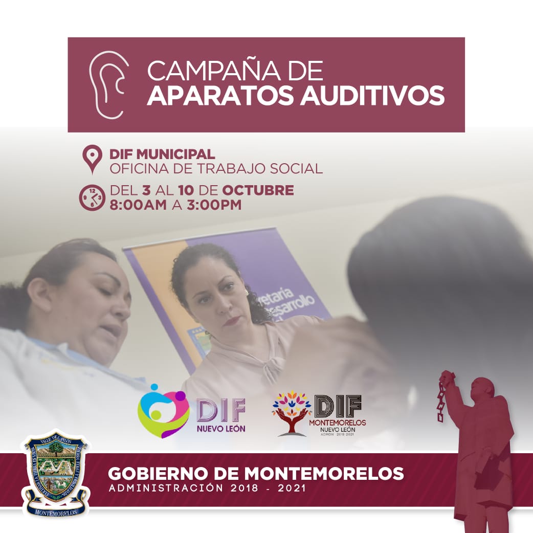 CAMPAÑA DE APARATOS AUDITIVOS. #MONTEMORELOS Los únicos requisitos son: Credencial de elector Comprobante de domicilio reciente CURP (La...