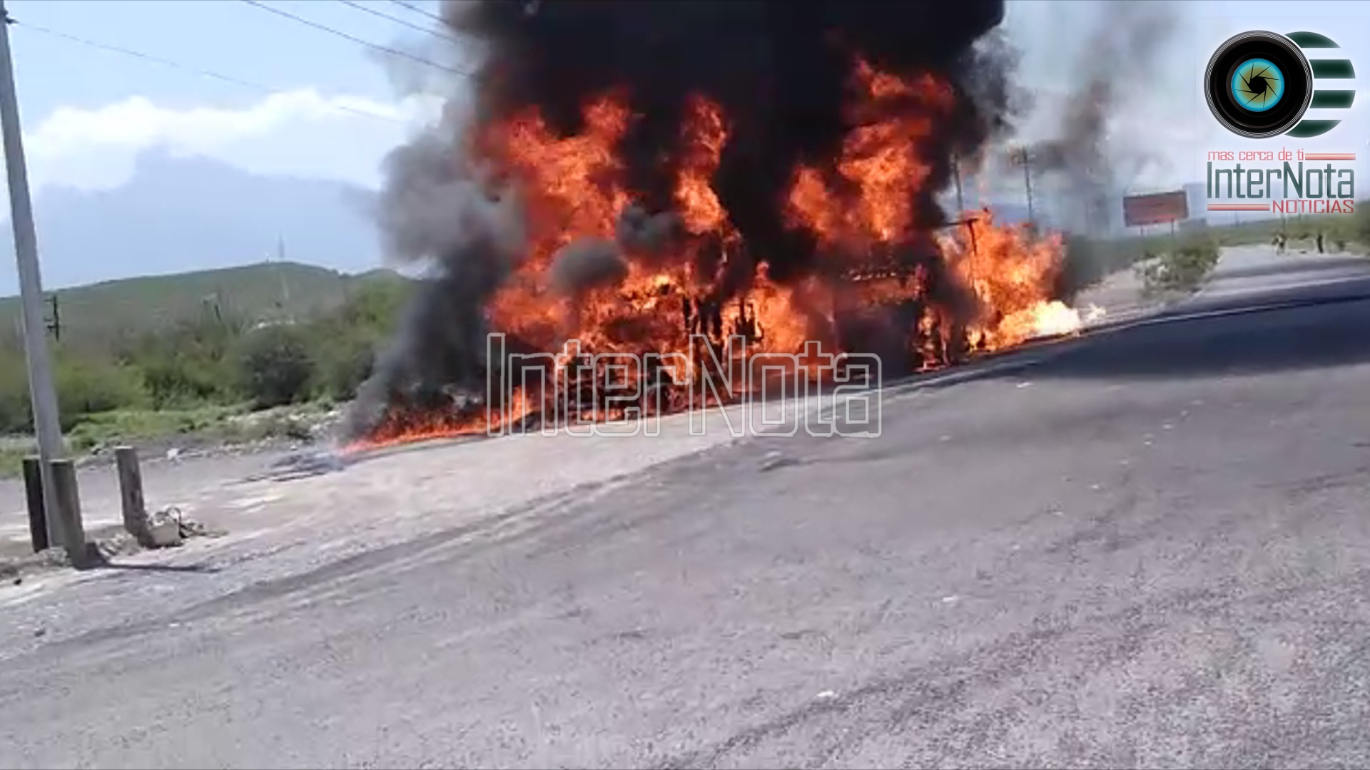 FUERTE INCENDIO DE DOS TRACTO CAMIONES. Mina, N.L.- Un fuerte incendio de dos vehículos tipo tracto camiones provocaron fuerte movilización...