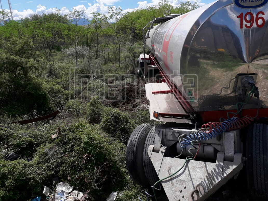 TRACTO CAMIÓN TERMINA VOLCADO Y FUERA DE LA CARPETA ASFÁLTICA. Allende.- Se registra un accidente vial en la carretera Allende-Cadereyta,...