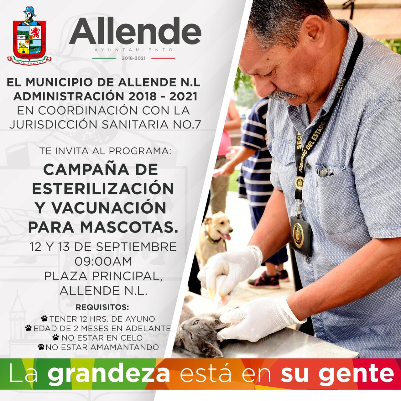 PRÓXIMA CAMPAÑA DE ESTERILIZACIÓN Y VACUNACIÓN PARA MASCOTAS EN ALLENDE N.L.