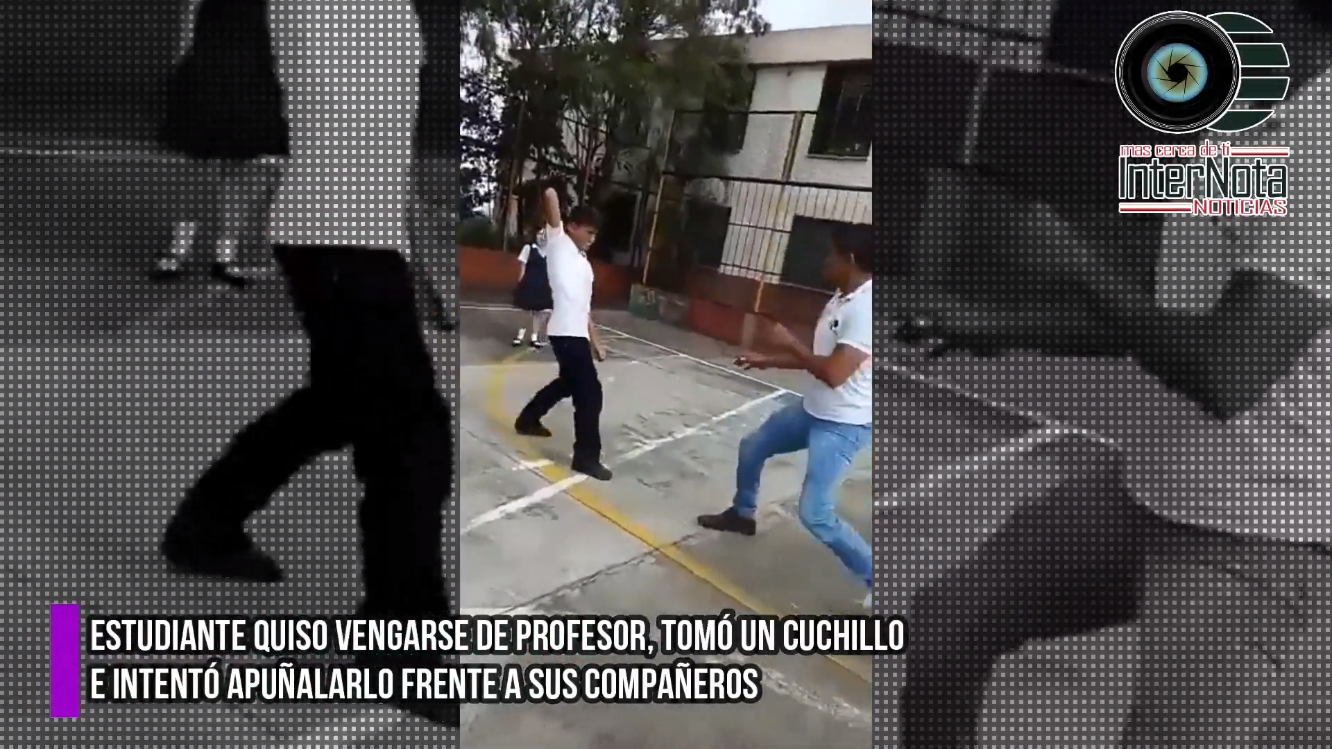 ESTUDIANTE QUISO VENGARSE DE PROFESOR, TOMÓ UN CUCHILLO E INTENTÓ APUÑALARLO FRENTE A SUS COMPAÑEROS Un menor miraba furioso a...