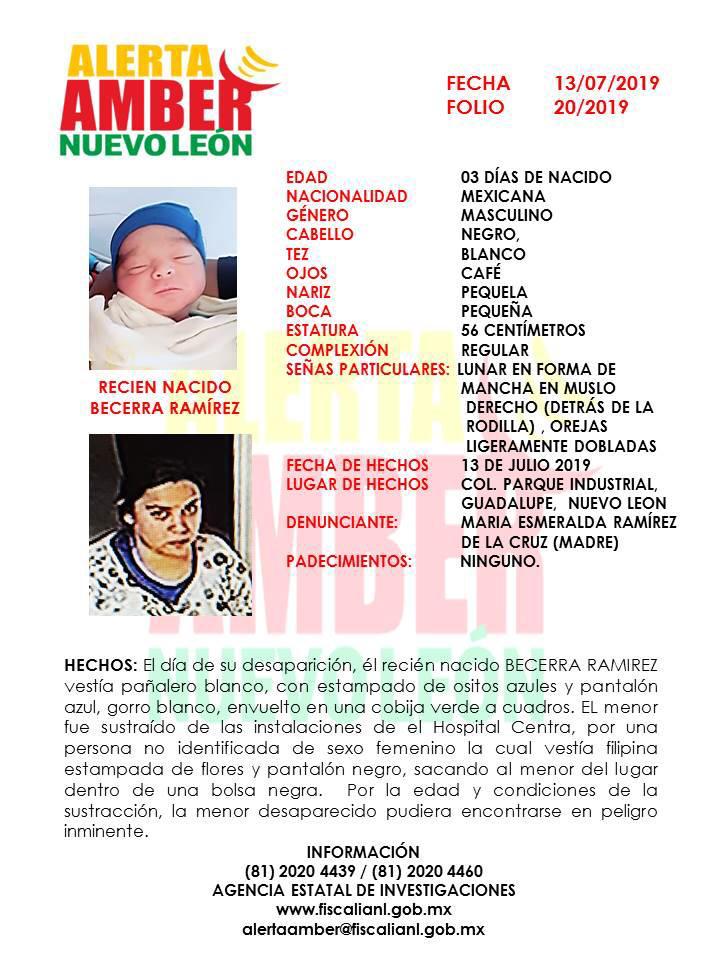 #ALERTA ROBAN BEBE RECIÉN NACIDO Guadalupe.- Fuerte movilización se ha registrado en el área metropolitana luego de recibir un reporte...