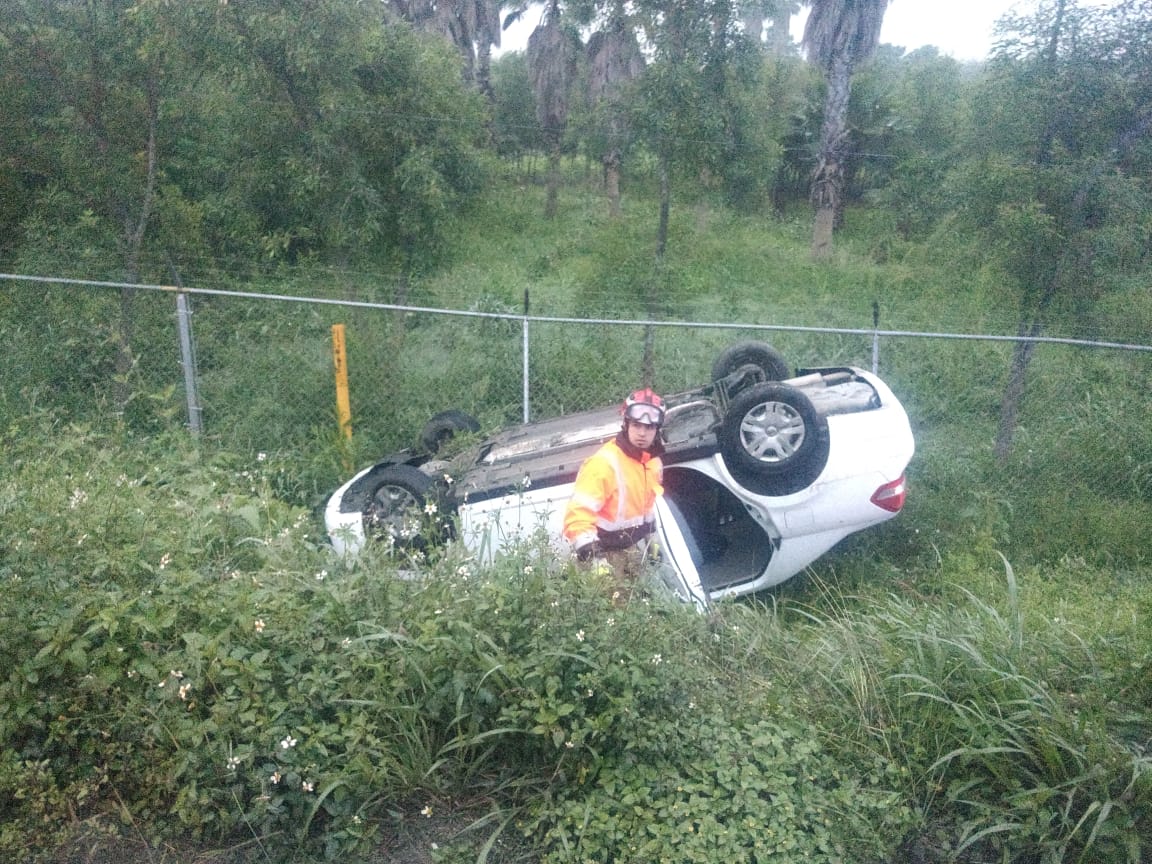 Montemorelos_ Un accidente vial tipo volcadura se registró hace unos momentos a un costado de la carretera nacional a la...