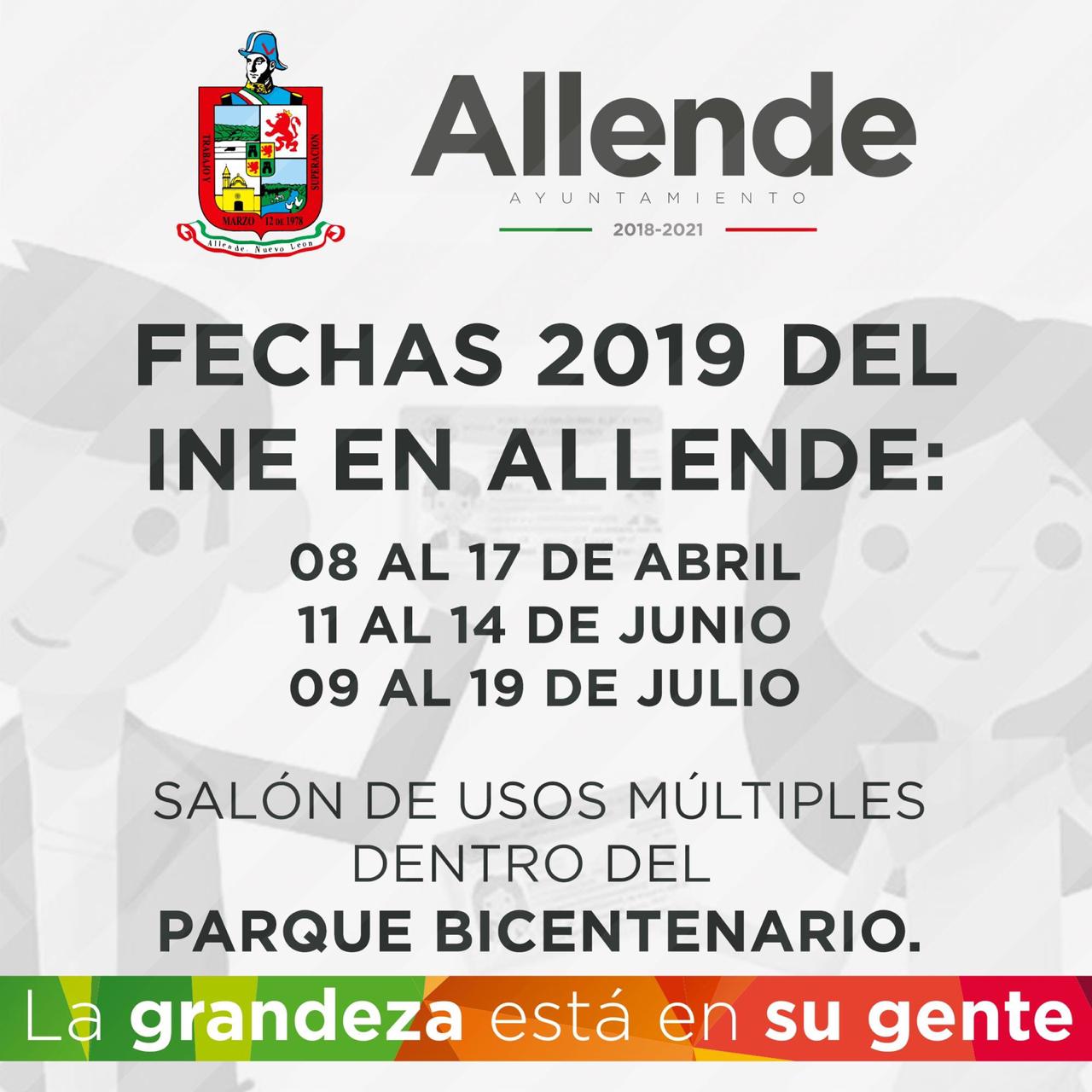 FECHAS QUE ACUDIRÁ EL INE AL MUNICIPIO DE ALLENDE N.L.