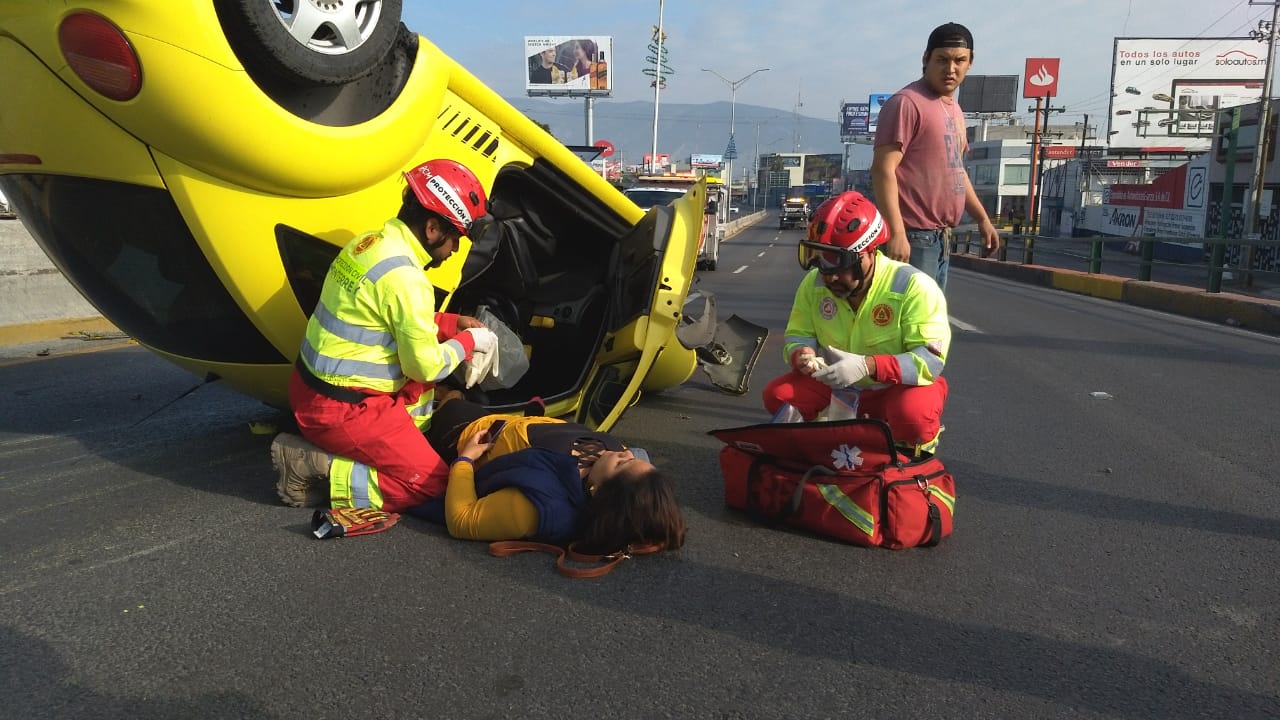 Monterrey_ Un accidente vial tipo volcadura se registró sobre la av. Gonzalitos en su cruce con Ruiz Cortines donde una...