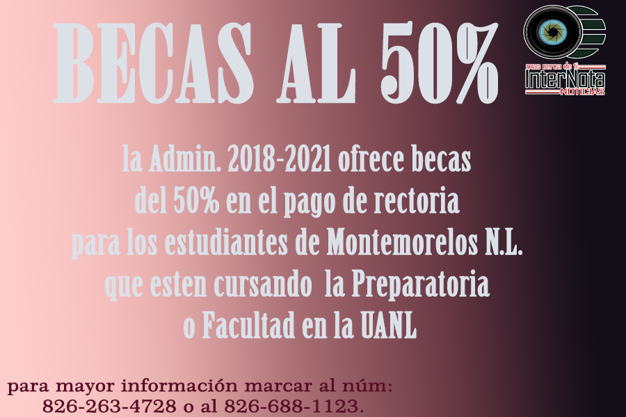 Montemorelos.- La Administración 2018-2021 encabezada por el Alcalde Luis Fernando Garza ofrecen becas del 50% para los estudiantes que cursen...