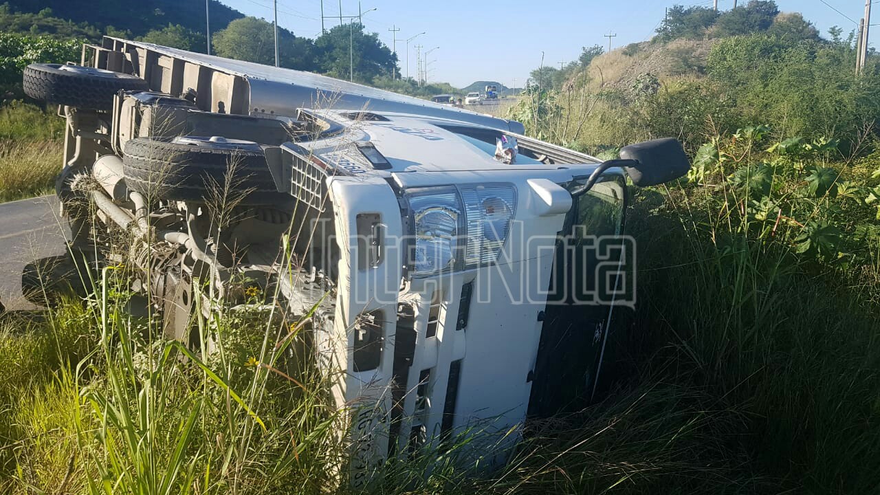 Montemorelos_ Un accidente vial tipo volcadura por parte de una unidad repartidora de lácteos de la empresa LALA se registró...
