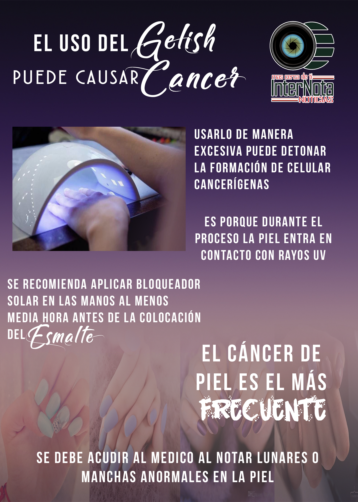 EL USO DEL GELISH PUEDE CAUSAR CÁNCER Usarlo de manera excesiva puede detonar la formación de celular cancerígenas, es porque...