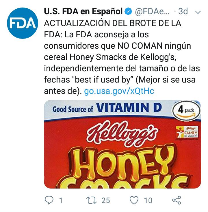 El cereal ´Honey Smacks´ contaminados fueron distribuidos a México, Aruba, Curazao, las Bahamas, Barbados, Costa Rica entre otros; autoridades sanitarias...