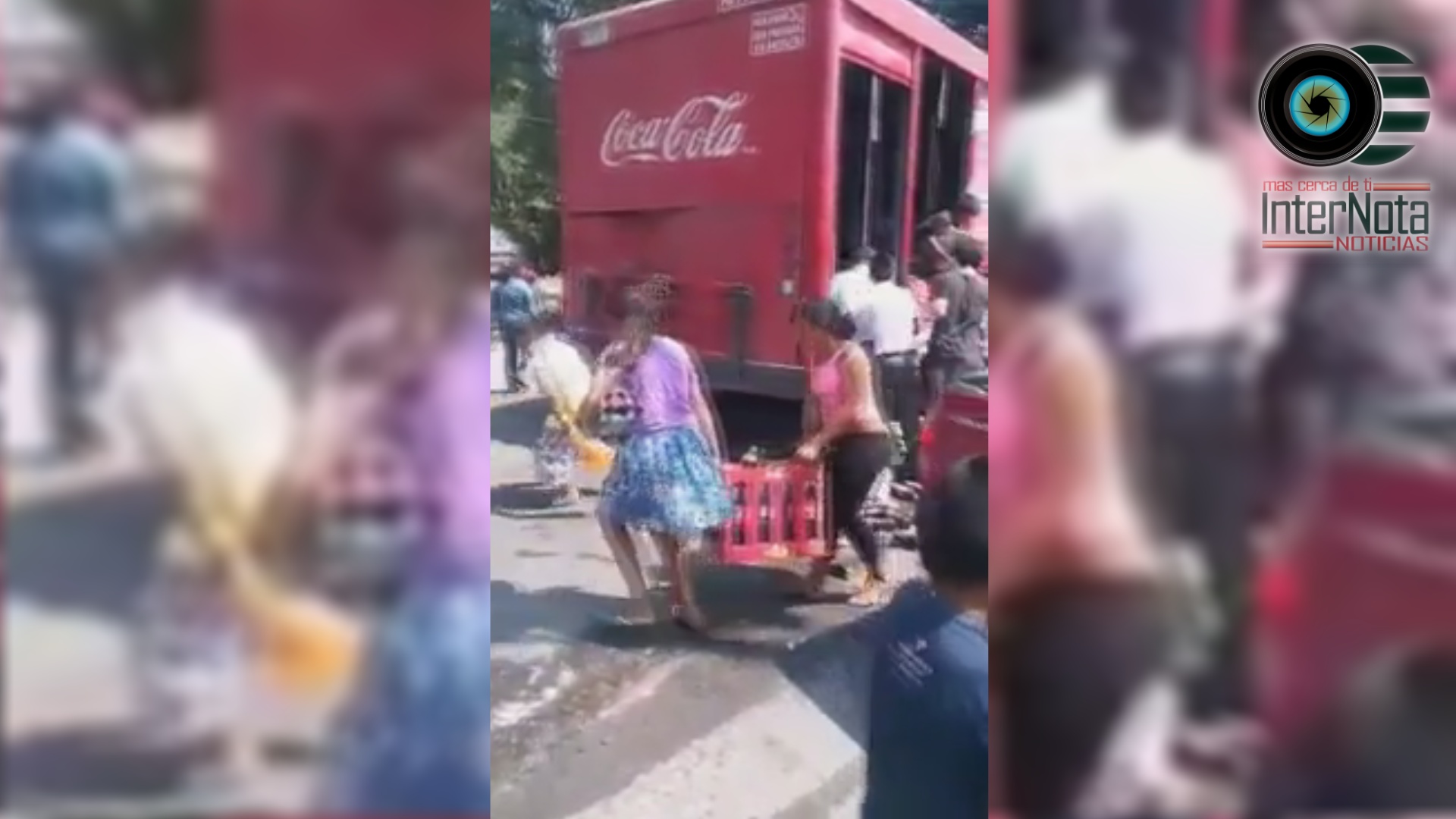 Michoacán.- Un grupo de hombres, mujeres y niños participó en el saqueo cometido en contra de un autobús de refrescos...