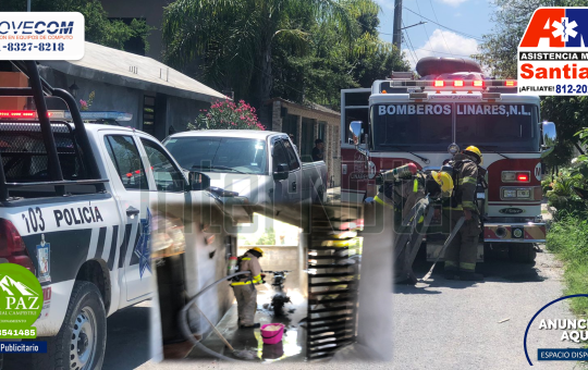 Bomberos Linares atiende el reporte de un incendio de casa habitación en calle Josefina Garza García cruce Pedro Benítez con...