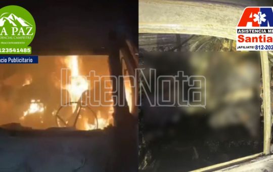 Un vehículo fue incendiado con dos cuerpos en su interior a un costado de la carretera a las entradas al...
