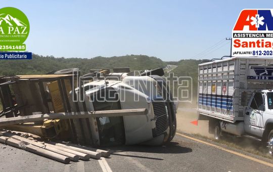 Un accidente vial tipo volcadura se registró sobre carretera nacional en el lugar conocido como cuesta de garrapatas en donde...
