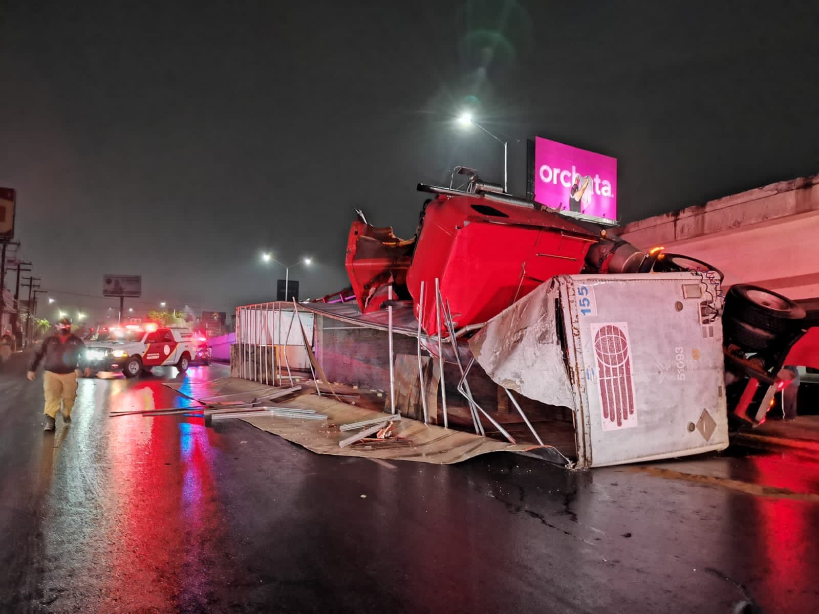 Monterrey_ Durante la madrugada del día de hoy una unidad de carga termino volcada esto tras sufrir un accidente vial...