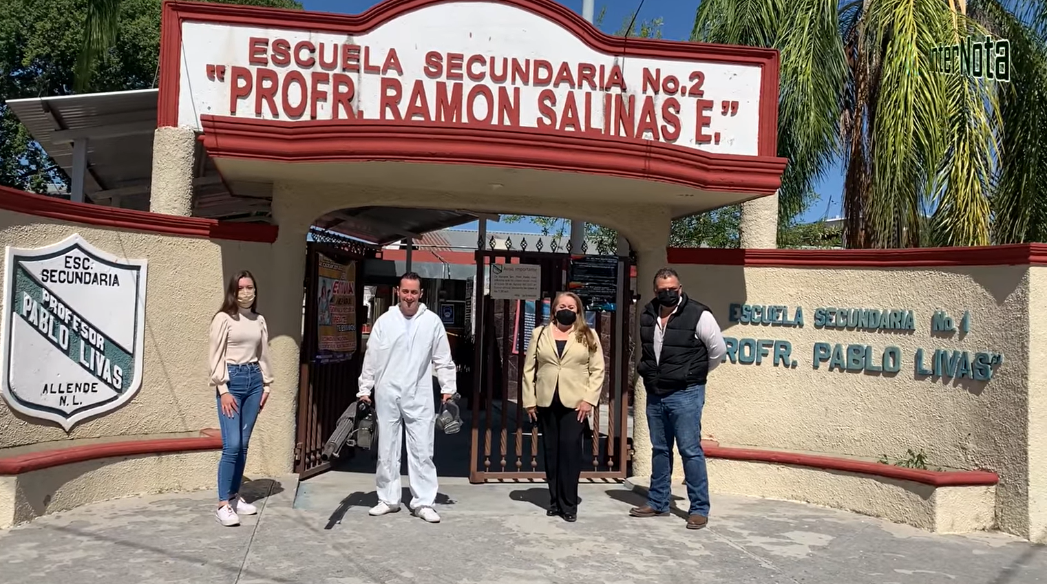 DIPUTADO LALO LEAL SANITIZA ESC. SECUNDARIA PABLO LIVAS EN ALLENDE NL