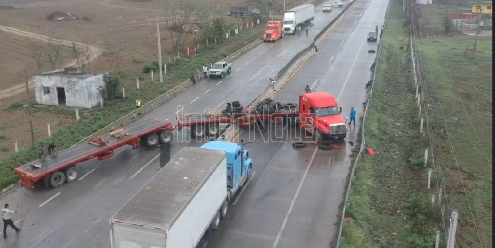Allende. – Una unidad de carga la cual tras perder el control se estrella contra las barras de contención, obstruyó...