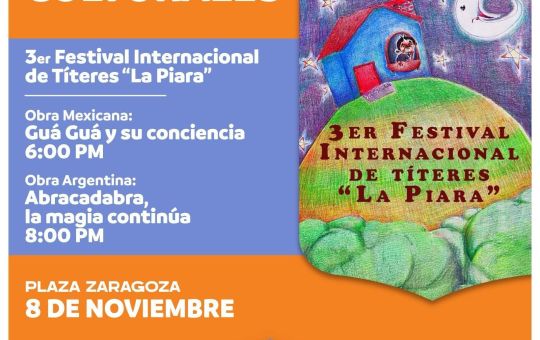 🟠 3er Festival Internacional de Títeres “La Piara”🎬Obra Mexicana:Guá Guá y su conciencia⏰ 6:00 PM🎬Obra Argentina:Abracadabra, la magia continúa.⏰8:00 PM📍Plaza...