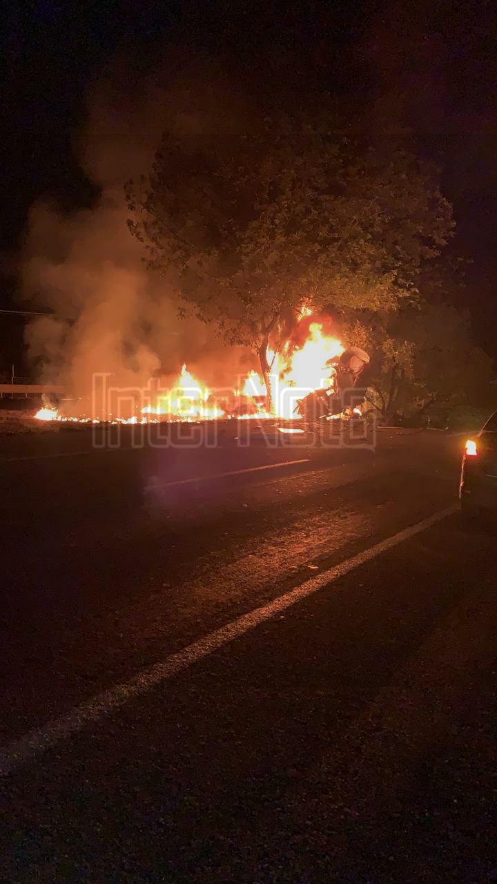 SE INCENDIA TRACTOCAMION EN ACCIDENTE Santiago.- Un fuerte accidente se registra en el km 236 de la Carretera Nacional a...