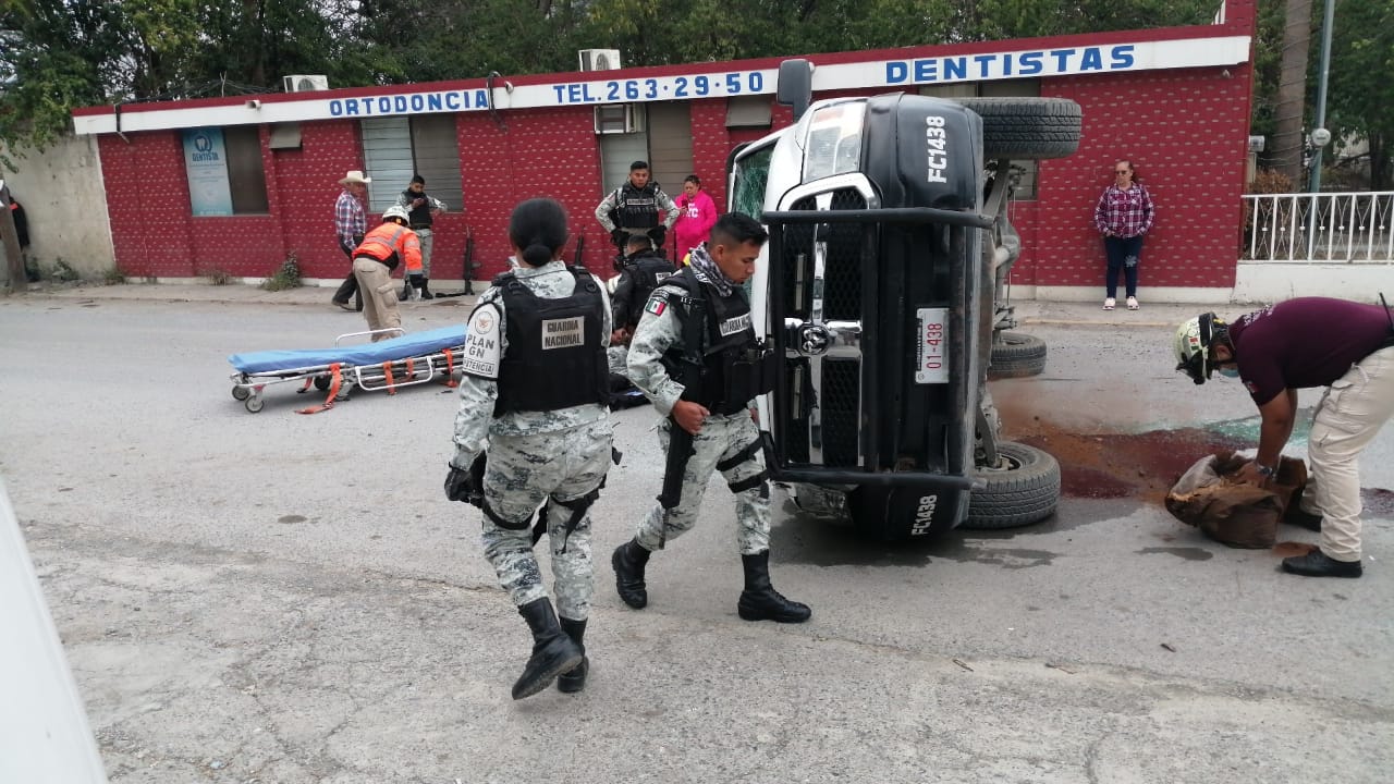 UNIDAD DE GUARDIA NACIONAL TERMINA VOLCADA Y DEJA A UNIFORMADOS LESIONADOS. Montemorelos. - Un accidente vial se registró en la...