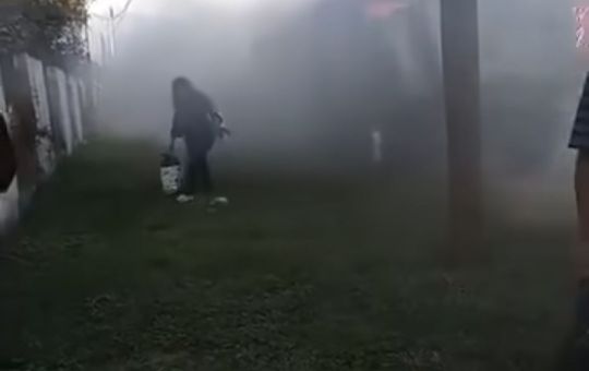Linares, N.L. – Un camión de pasajeros se encuentra en llamas sobre la carretera a Iturbide, a la altura de...