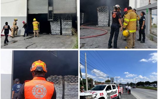 SE REGISTRA INCENDIO EN UNA BODEGA QUE ALMACENABA CARBON ESTO EN CARRETERA NACIONAL DE SUR A NORTE EN ALLENDE N.L. A UN LADO DE LA EMPRESA CARTA BLANCA