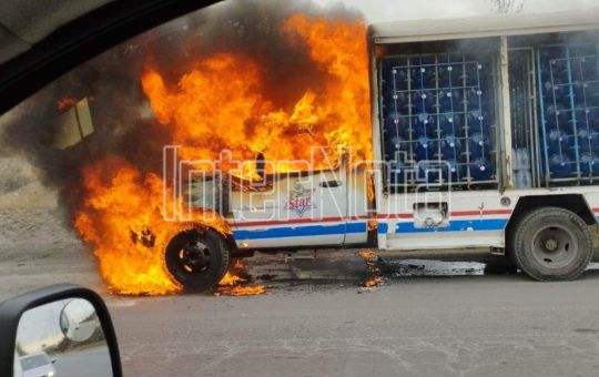 Un camión doble rodado cargado de agua potable se incendió en carretera libre Reynosa en el tramo de Cadereyta a...