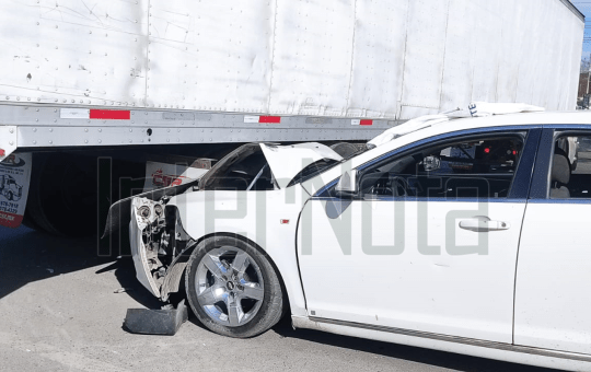 Cadereyta_ Un accidente vial se registró sobre el boulevard José Miguel González donde un vehículo se estrelló contra la caja...