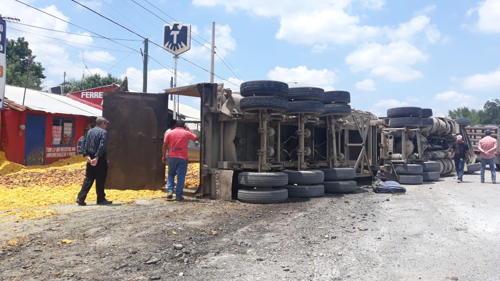 #INTERNOTA #ENVIVO SE REGISTRA #ACCIDENTE VIAL TIPO #VOLCADURA DONDE UN TRACTO CAMIÓN PIERDE EL CONTROL A LA ALTURA DEL BARRANQUITO #CADEREYTA, NO HAY LESIONADOS, EXTREME PRECAUCIÓN.