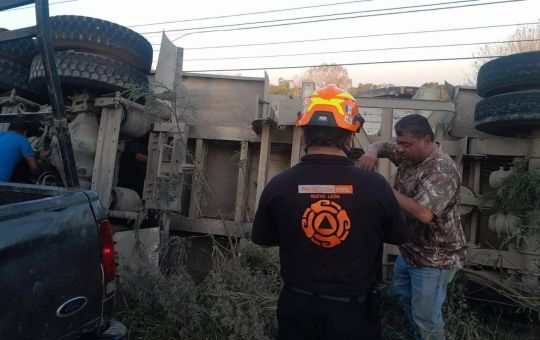Cadereyta, N.L._ Un tráiler sufrió una volcadura en el kilómetro 10 de la carretera Cadereyta-Allende, a la altura de la...