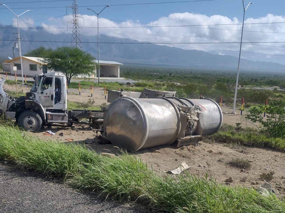 Mina. – Una volcadura de un tracto camión se registro sobre la carretera a Monclova en el kilometro 95 en...