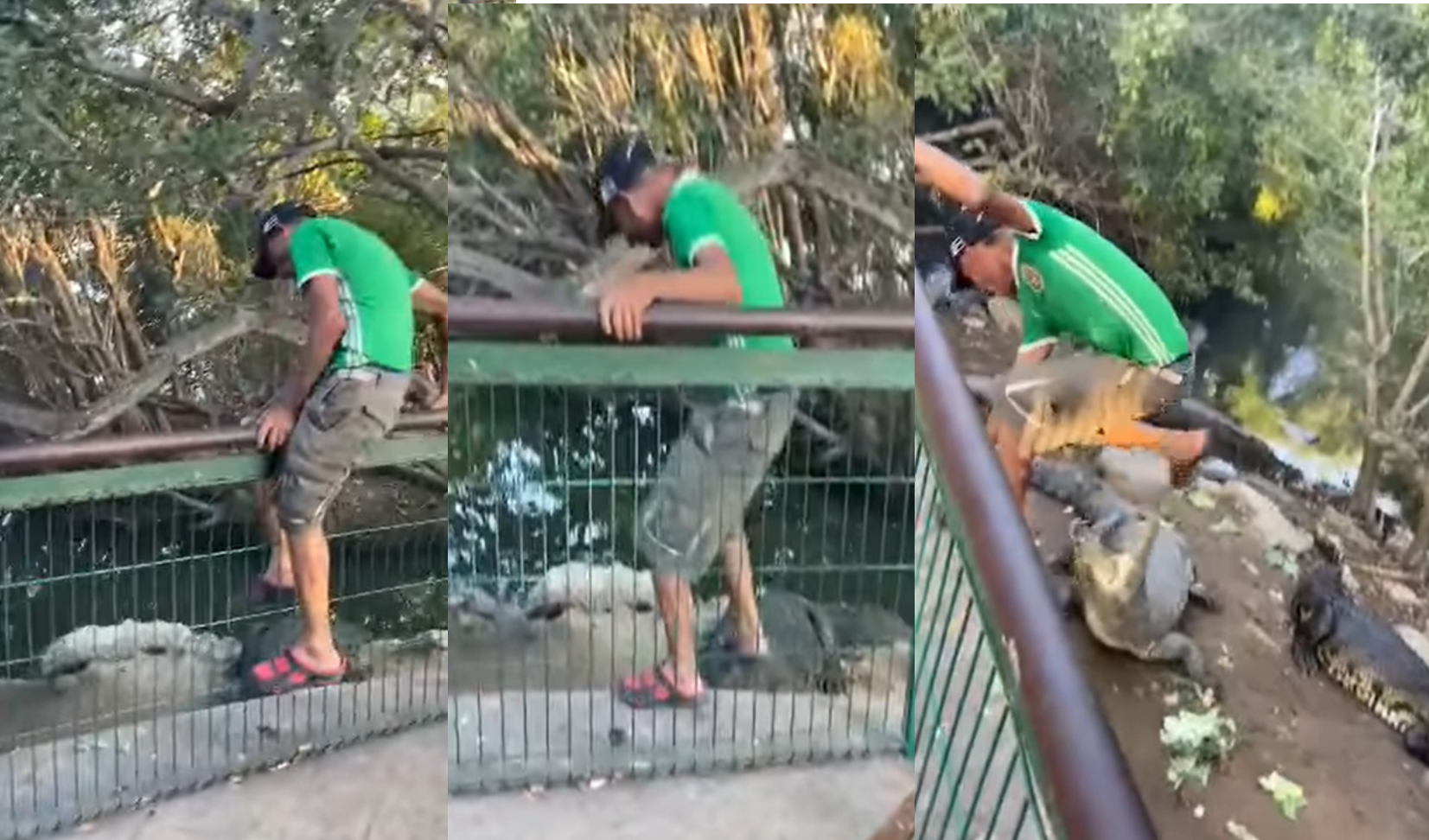 Un sujeto en completo estado de ebriedad se metió a la zona de cocodrilos y los pateó diciendo "no me...